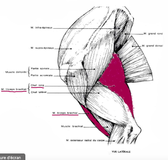 Les micro-traumatismes répétés lors de l’atterrissage vertical sur les membres antérieurs après un sauts o lors de changements de direction rapides peuvent aussi entraîner des tendinites du muscle biceps brachial. Globalement, on peut retrouver des lésions tendineuses sur les zones de l’épaule et du coude.